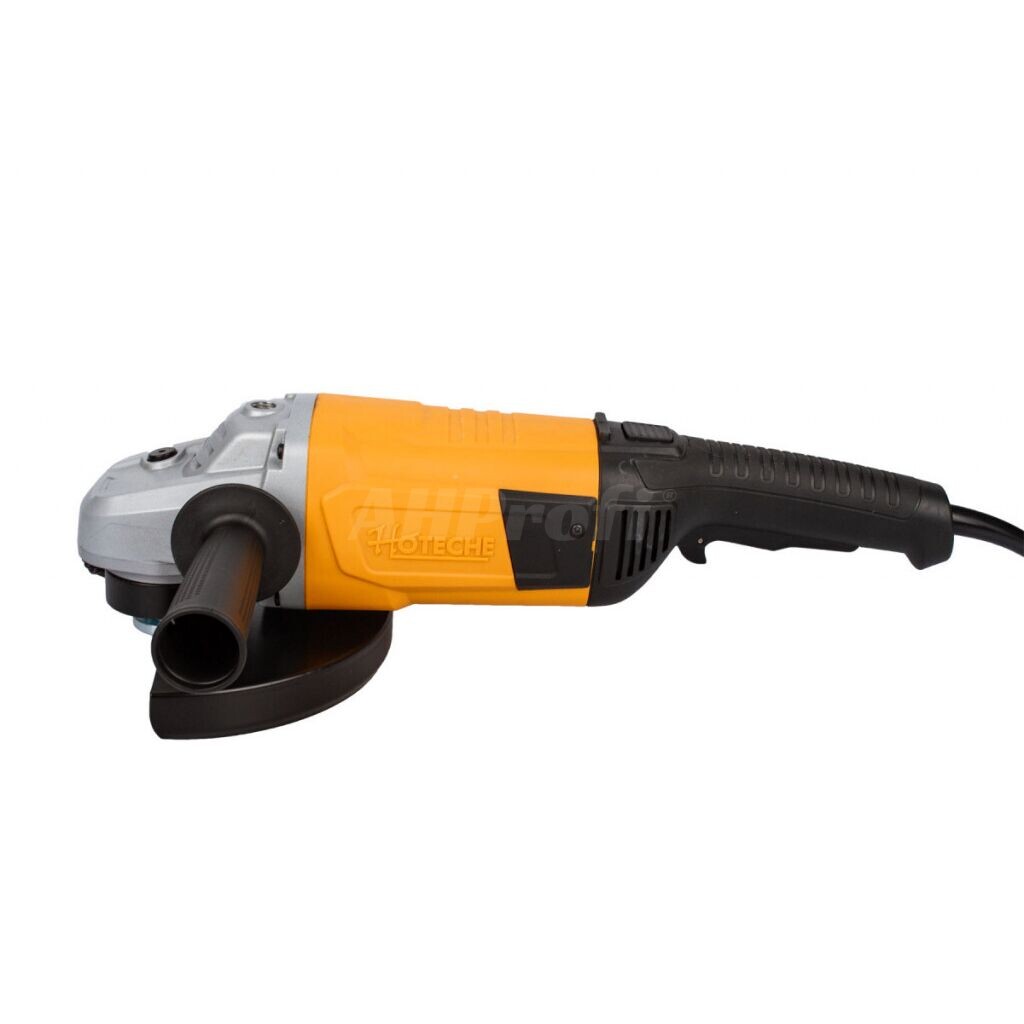 Velmi výkonná úhlová bruska Hoteche 230 mm s výkonem 2400W, díky kterému dosahuje až 6500 otáček za min-1 naprázdno. Řezat, brousit nebo kartáčovat můžete pomocí kotoučů o průměru 230 mm, které upnete na vřeteno se závitem M14.