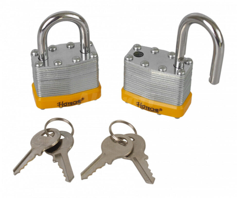 Sada 2 ks visacích zámků. Pozinkované železo a ocel. 4 klíče.