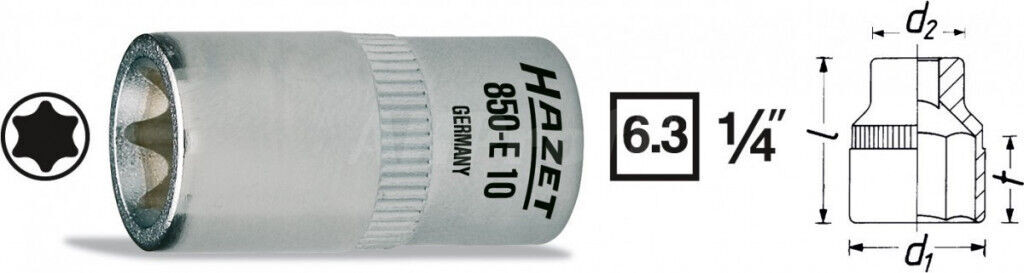 Vnitřní nástrčný klíč 1/4" TORX® E4 HAZET 850-E4 - HA036653