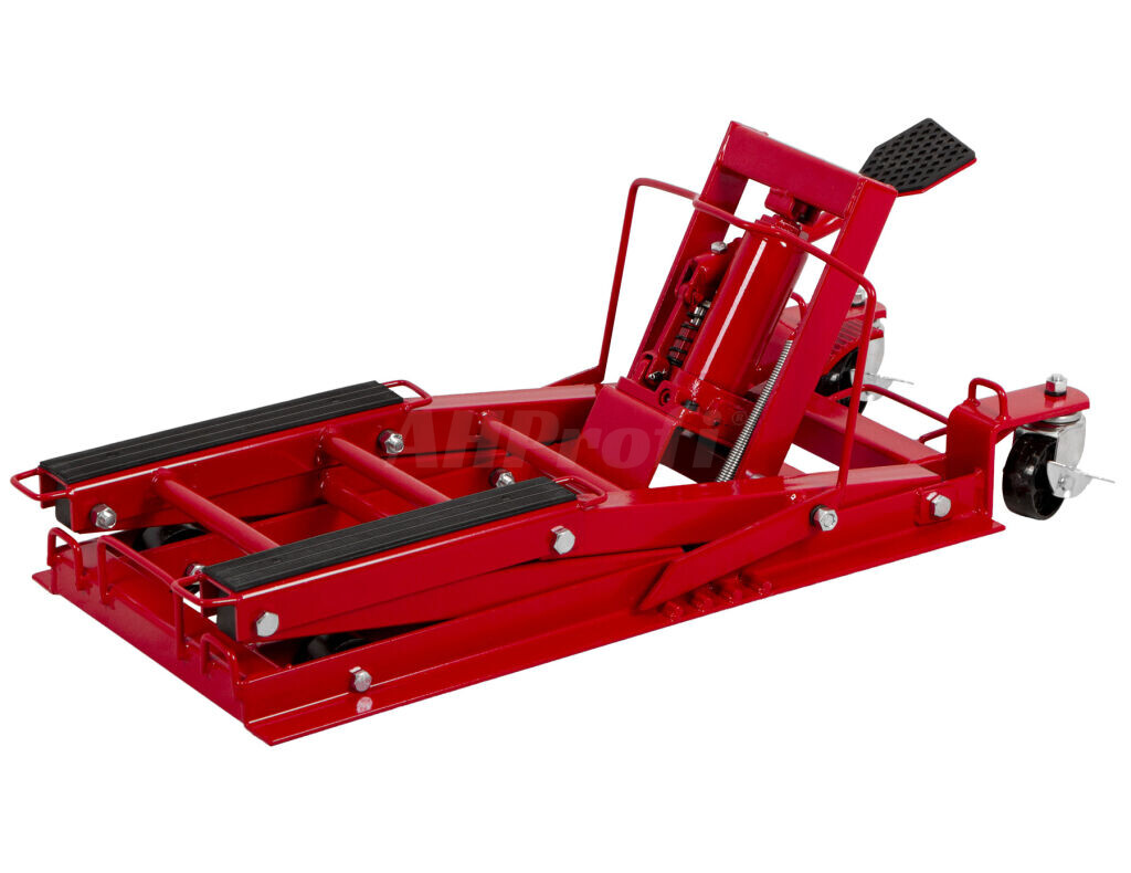 Hydraulický zvedák motocyklů s pedálovým ovládáním a nosností až 680 kg.